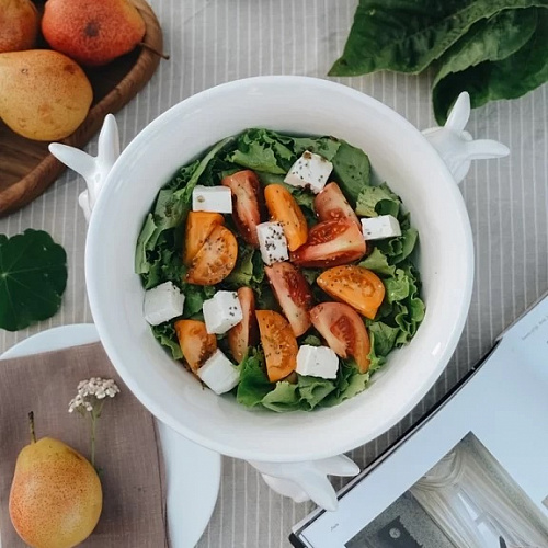 Согласитесь, трудно удержаться и не попробовать хотя бы кусочек из этой щедрой чаши! Салат, фрукты, снеки — что ни сервируй, всё будет съедено…